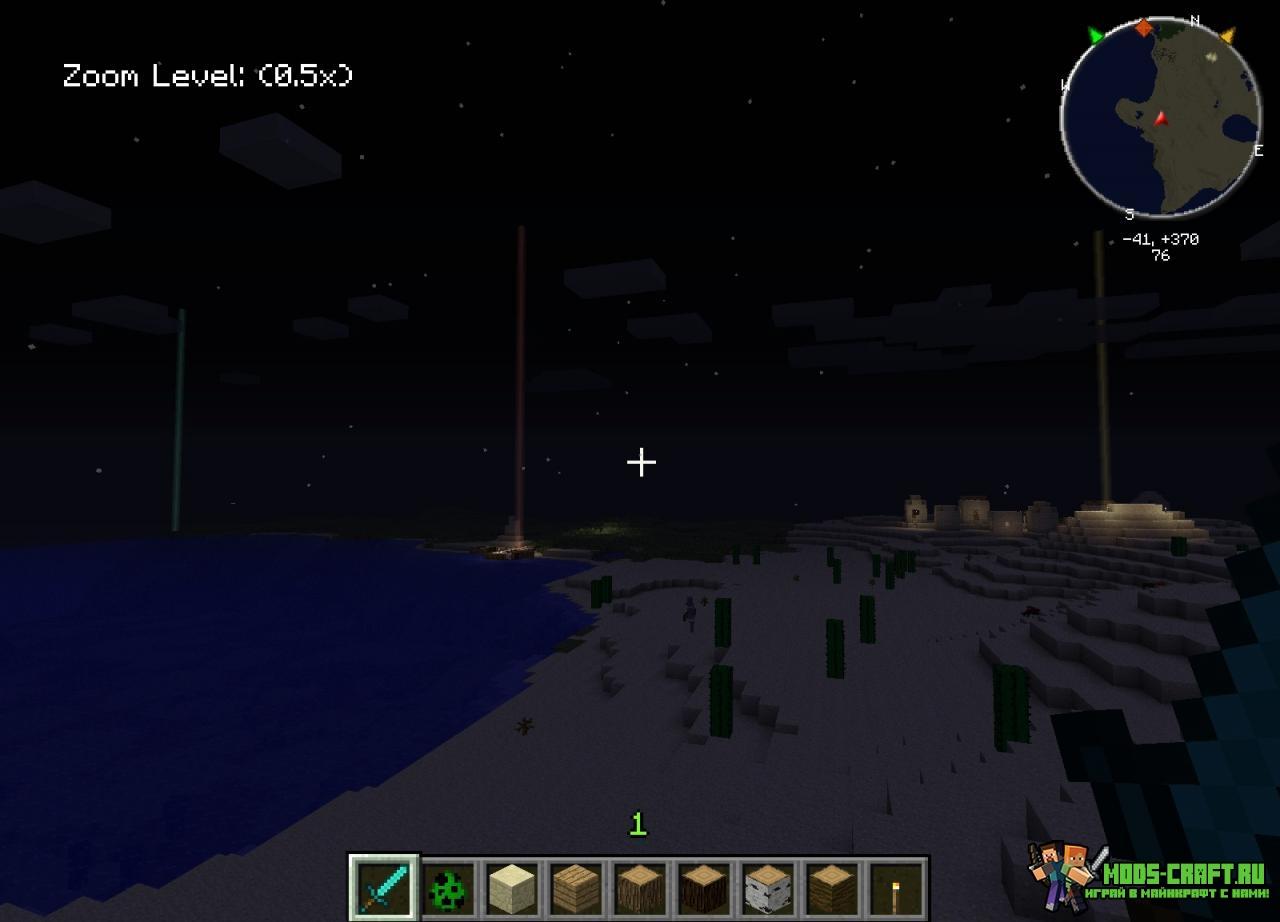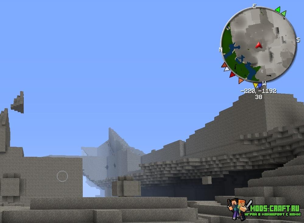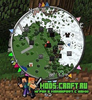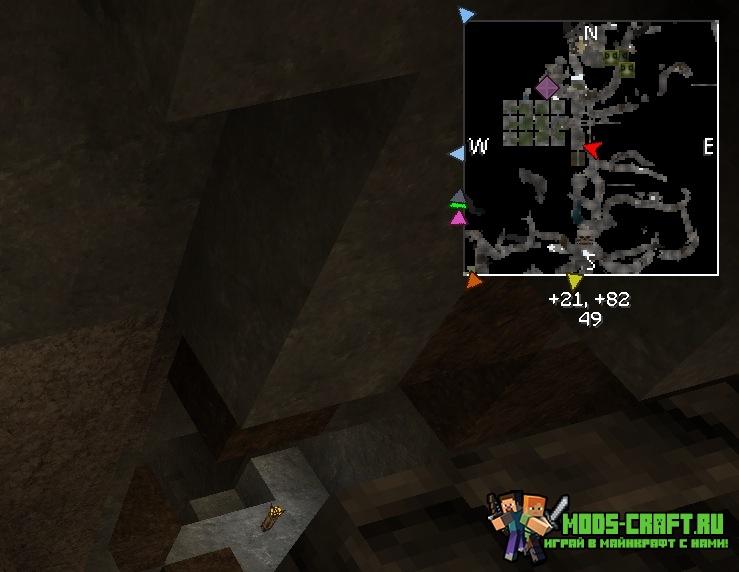 Мод добавляет мини-карту в правом верхнем углу экрана, на которой будут отображаться мобы и игроки. Также есть возможность устанавливать путевые точки и задавать маршруты для удобства исследования.