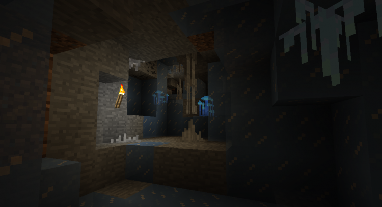 Модификация Wild Caves делает подземный мир Minecraft более живым и разнообразным. В пещерах теперь можно встретить сталактиты, сталагмиты, ледяные сосульки, а также светящиеся грибы, которые добавляют атмосферы и естественного освещения. Благодаря этому модулю исследование подземелий становится куда более захватывающим и визуально интересным.