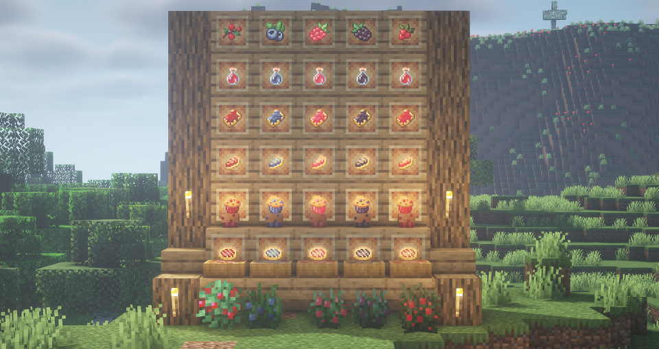 Если вы хотите разнообразить свой мир Minecraft, не добавляя ничего лишнего, стоит рассмотреть дополнение Wildberries. Он добавляет несколько видов ягод, которые можно найти по всему игровому миру, идеально подходящие для тех, кто устал от мира, наполненного только травами и цветами. Мод включает в себя четыре вида ягод, а именно малину, ежевику, чернику и клюкву, каждый из которых можно найти в определенных биомах. Например, клюкву можно найти в болотных биомах. Мало того, что вы можете есть эти ягоды, чтобы утолить голод, мод также вводит различные виды еды, такие как пироги и бутерброды. Интересно, что последние могут удалить яд.