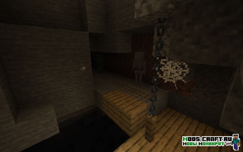 Сид переносит вас на равнину рядом с зомби-деревней, вокруг которой густая тайга, реки и небольшие горы. Совсем неподалёку есть разрушенный портал, но находится он под землёй, а чуть ниже него расположена заброшенная шахта.